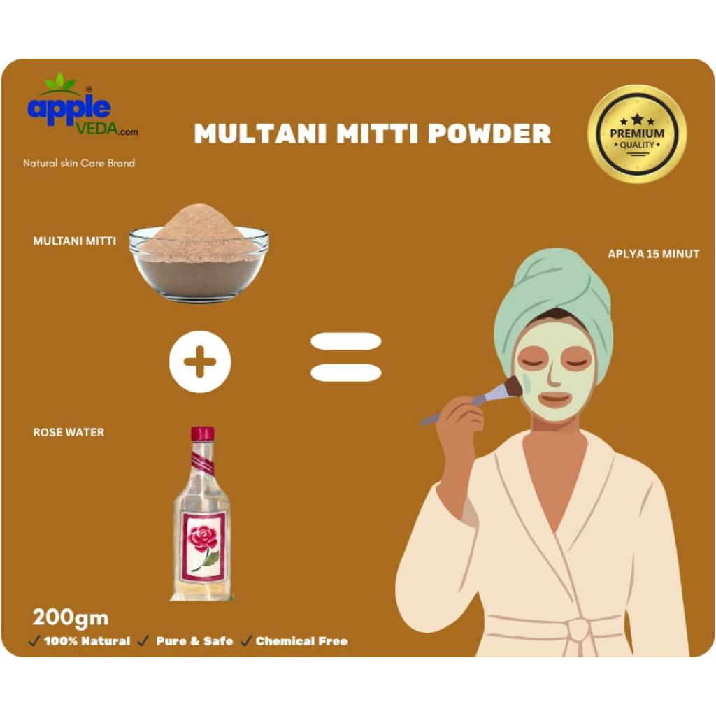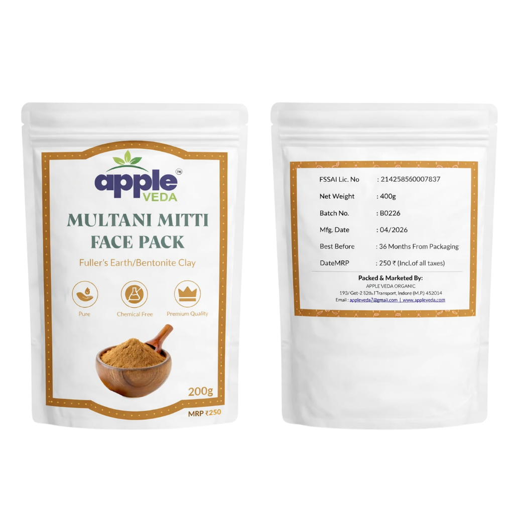 Multani Mitti helps absorb excess oil and controls shine, making it perfect for oily and combination skin. It also improves skin tone, reduces dullness, and gives a naturally fresh and radiant look.