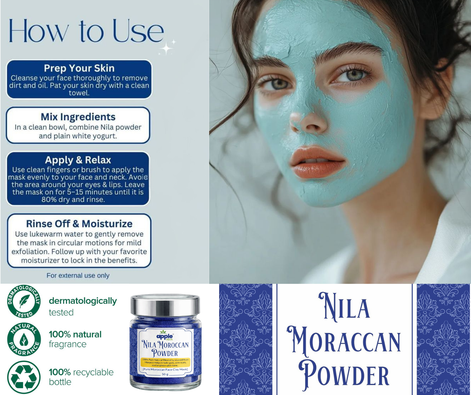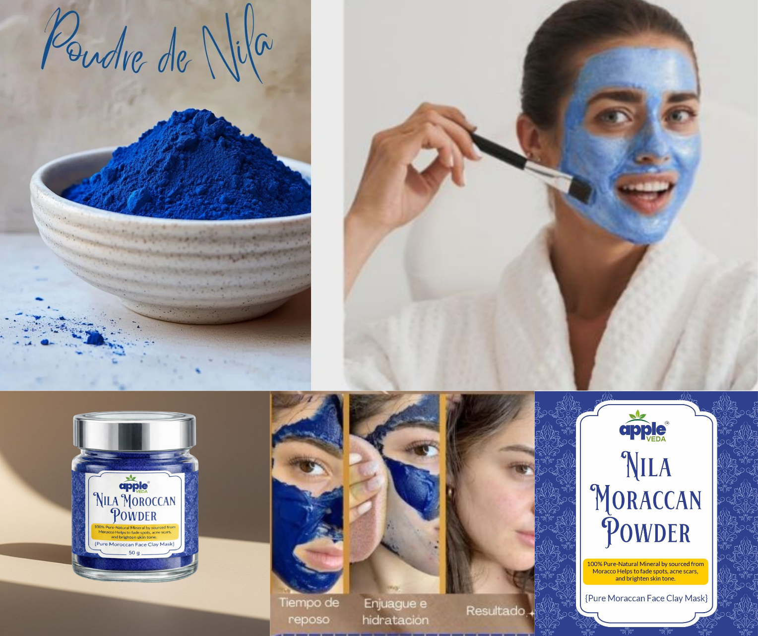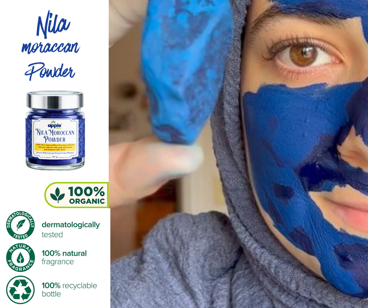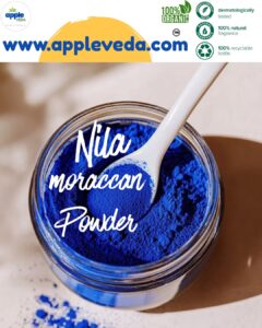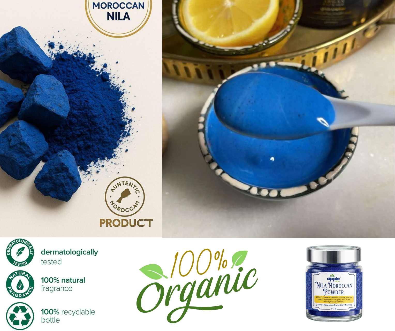 Moroccan Nila Powder is derived from the leaves of the indigo plant (Indigofera tinctoria) and is traditionally used in Moroccan hammam (bathhouse) rituals. This vibrant blue powder is cherished for its ability to enhance skin health and appearance, making it a popular choice for natural skincare enthusiasts.