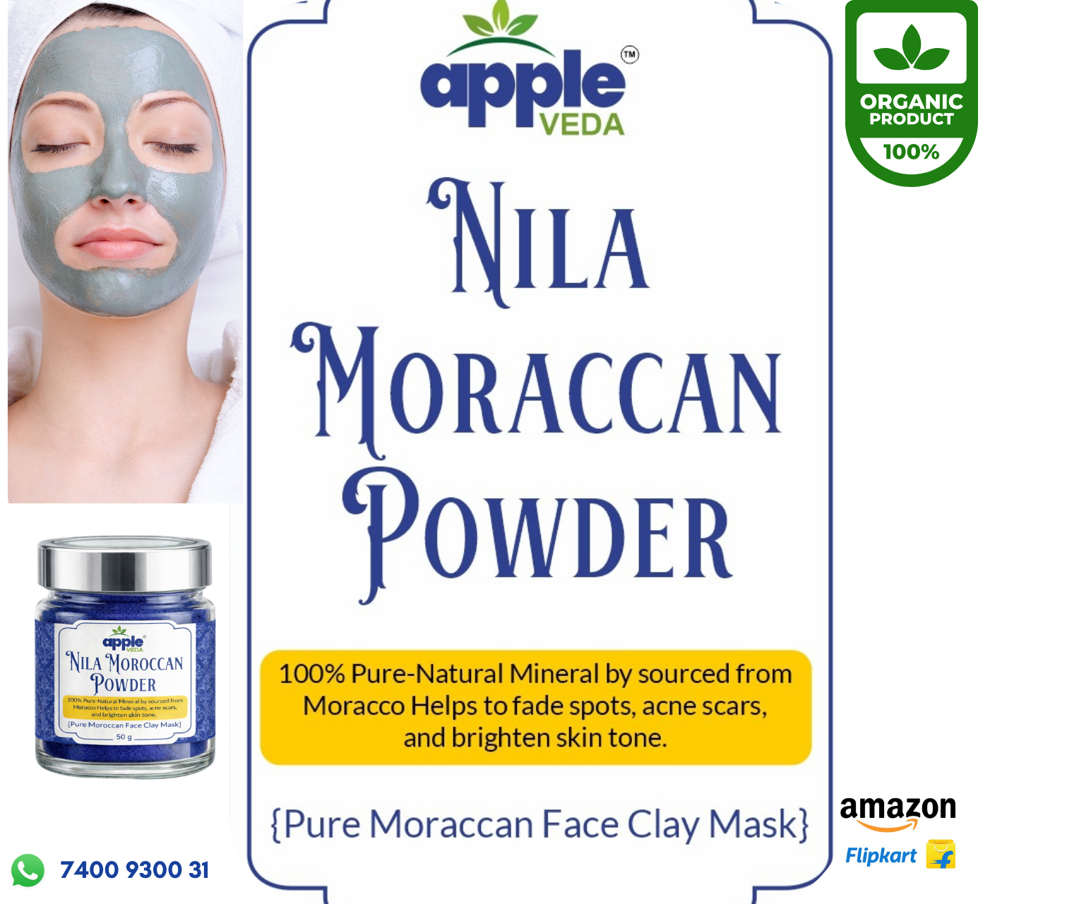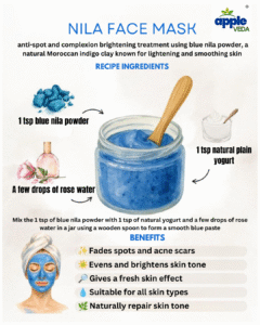 Skin Brightening: Nila Powder is renowned for its natural skin-brightening properties. It helps reduce dark spots, hyperpigmentation, and uneven skin tone, resulting in a more radiant complexion.